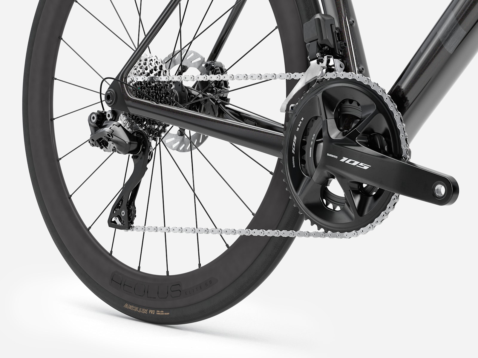 | Rims: | Front: Bontrager Aeolus Elite 50, OCLV Carbon, Tubeless Ready, 100x12 mm thru axle. Rear: Bontrager Aeolus Elite 50, OCLV Carbon, Tubeless Ready, 50 mm rim depth, Shimano 11-speed freehub, 142x12 mm thru axle |